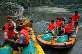 | 全天 | 早上乘漂流公司專線車赴天下第一漂猛洞河,赴漂流上站碼頭,體驗“天下第一漂”,起點哈 妮宮行車1小時,漂流水路長17公里,漂流兩個半小時。從哈妮宮放舟而下,一路是古老的河道,哈妮宮、山腳巖、捏土瀑布、回首峽、落水坑瀑布、夢思峽、牛路河大橋等景點。絕壁百里,怪石嶙峋,灘奇水異,兩岸蒼翠的林木,云霧繚繞,飛瀑流泉與溶巖峰林交相輝映。拐一百五十五個彎,在一百三十三個灘潭中穿梭而行,迂回流連,馳魂奔魄,心曠神怡。猛洞河漂流被著名的社會學家費孝通先生譽為“天下第一漂”;游覽贈送景點掛在瀑布上的土家第一鎮(zhèn)千年古鎮(zhèn)-【芙蓉鎮(zhèn)】,乘車前往人杰地靈、民族風味濃郁的【鳳凰古城】.入住酒店。入住酒店后當天旅游行程結束,到次日早餐前為自由活動期,請游客注意自身安全。 |